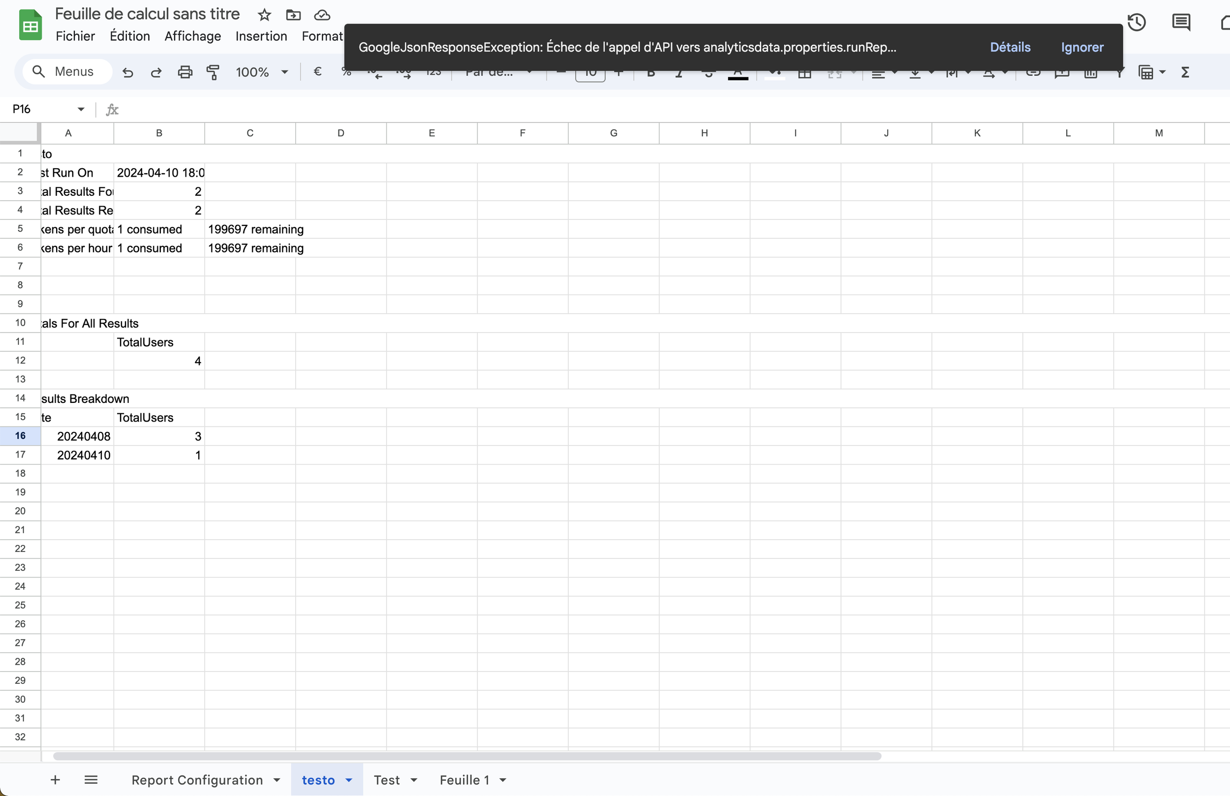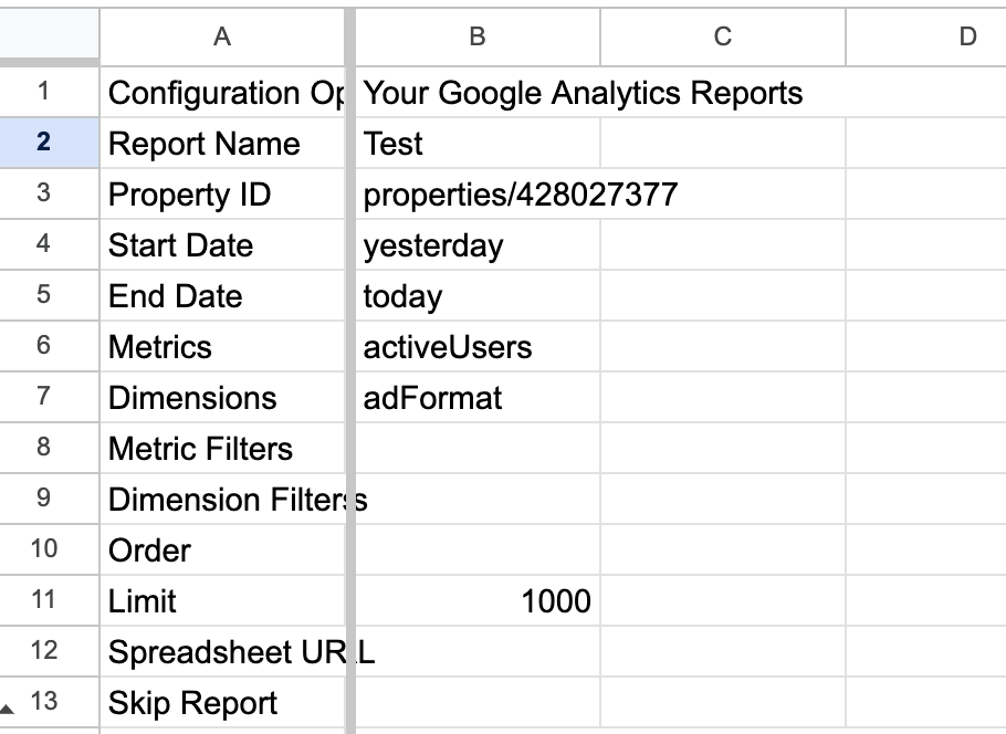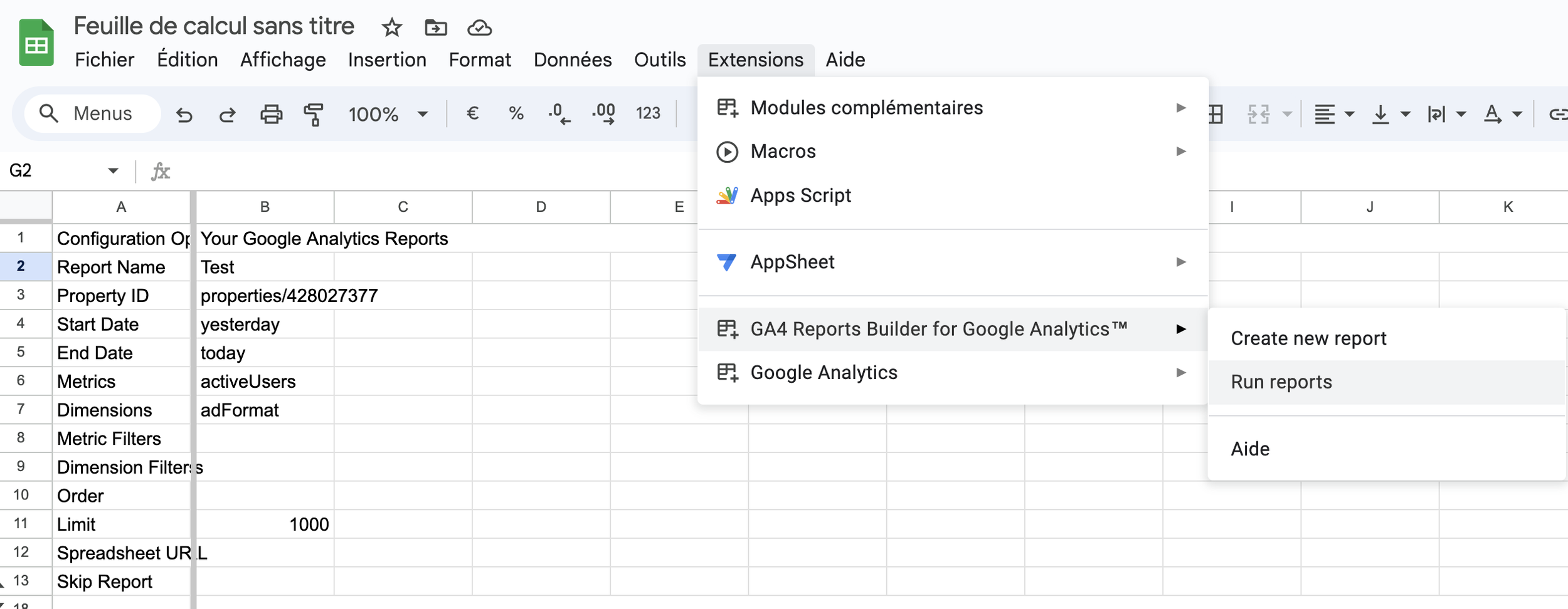 6. Click on Create Report and it will create a configuration sheet with all your informations that you can directly change in the sheet.