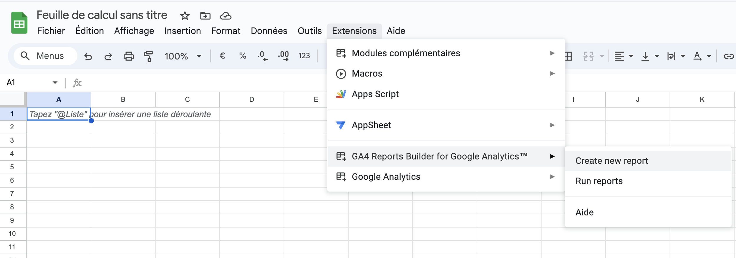 4. Now, you can go to extensions, select the one you just installed and click “Create new report”